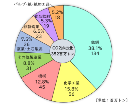 産業部門内では、鉄鋼業が最も多く38.1%を占め、次いで化学産業が15.8%を占めているのです。このように大量のCO2を排出している化学産業はCO2排出量削減の責務を負っており、もはや先延ばしできない、最優先の課題となっています。