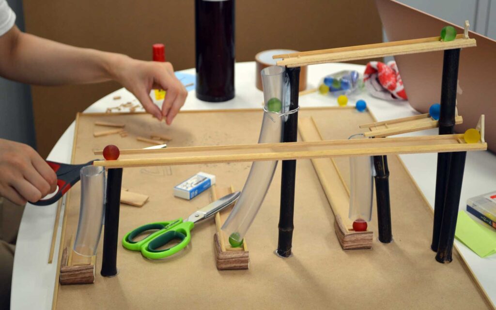 たとえば、2014年のお題は「オトナとコドモをつなぐもの」だった。両大学からの教員陣が交代でミニレクチャーを行い、デザイン思考、美術思考、コミュニケーション、科学、工学などから情報を提供し考えさせる。グループメンバーはアイスブレイク後、話し合いを開始する。彼らの創造的なアイデアのトリガーになる情報は、雑多な異分野グループでの議論の、いったいどこに潜んでいるだろうか。