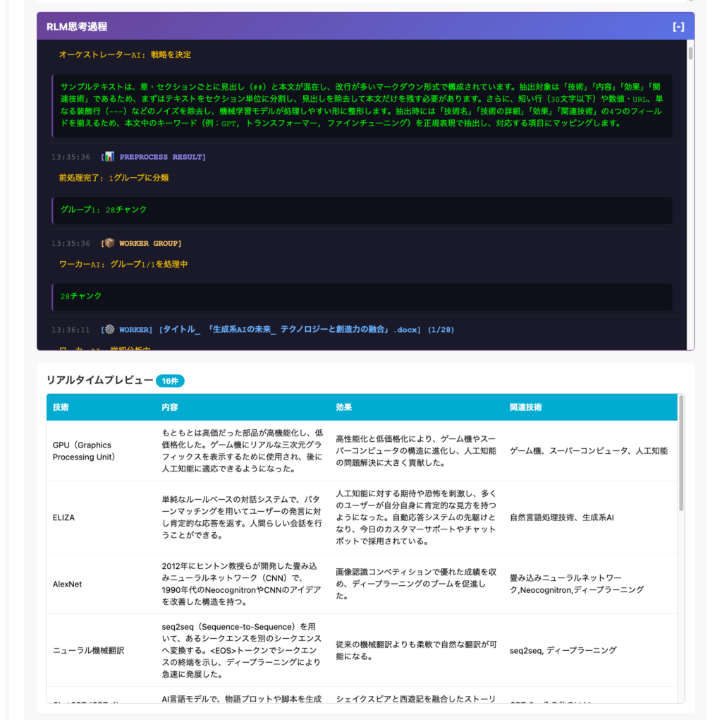 クラウドAIのAPI利用料金や制限に悩まされることなく黙々とデータを構造化していく様は見ていてワクワする。