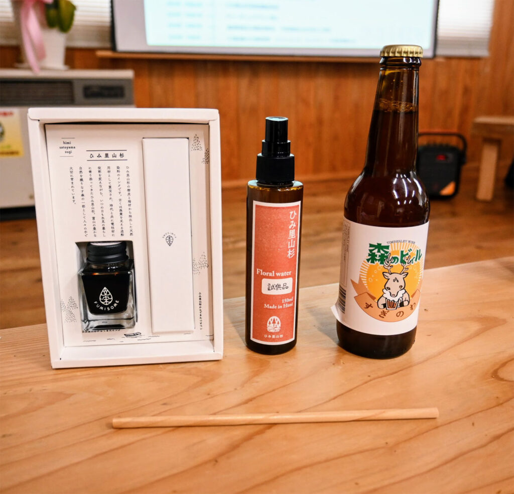 異業種との連携による新商品開発も進んでいる。ウッドチップを蒸留し香り付けしたビール、樹皮を利用したインク、森林浴の気分を味わえるアロマ製品などが開発されている。さらに、富山国際大学の学生と協力し、フォトフレームやキーホルダーを製作するなど、産学連携も進めている。間伐材を利用した割り箸の製造も行われており、木材資源を余すところなく活用しようとする姿勢が伺える。