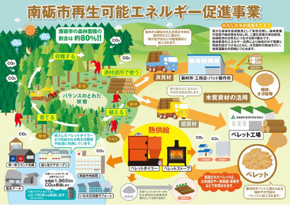 市域の約8割を森林が占める南砺市では、すでに木質バイオマスボイラーが稼働し、温浴施設や温水プールに熱を供給している。これは、山から出た間伐材や製材端材といった未利用木材を燃料として活用する木質バイオマス熱供給事業の好例だ。小中規模分散型の木質チップボイラーによる熱供給は、輸送コストを抑え、地域内での利用を進める上で有効な手段とされている。